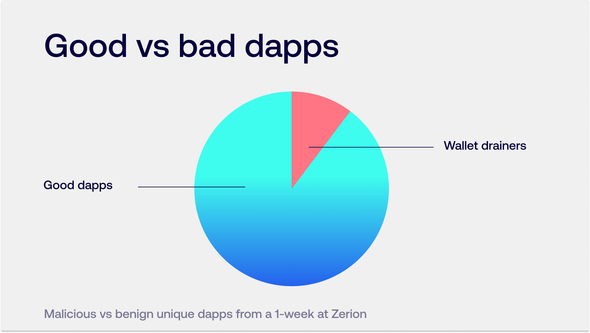 In the first week since Zerion Wallet added Blockaid-powered phishing defense, users tried to connect 5,763 dapps, and 595, or over 10%, turned out to be wallet drainers!