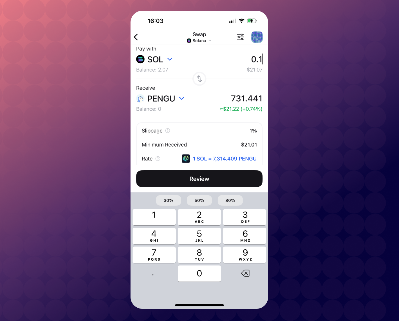 - Review Trade: Check the exchange rate, fees, and estimated output amount