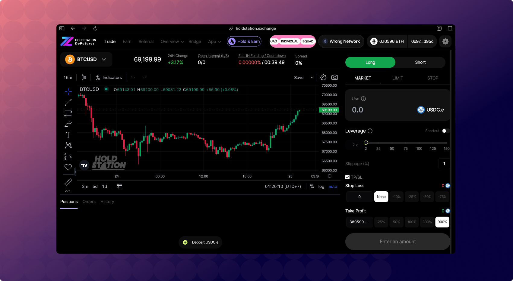 Holdstation seeks to create a smooth perps trading experience like what you get on a centralized exchange yet while maintaining self-custody. And you can use leverage of up to 150x!