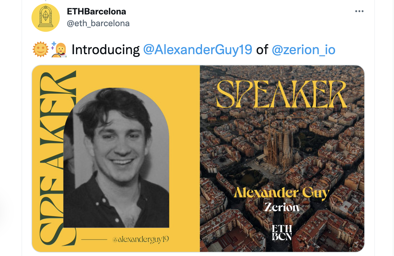 Throughout the week, the Zerion Team will be around Barcelona, speaking, networking, learning, building, and dancing. If you want to meet us, it’s best to ask on Twitter or Discord and we’ll reply with our team’s whereabouts.
